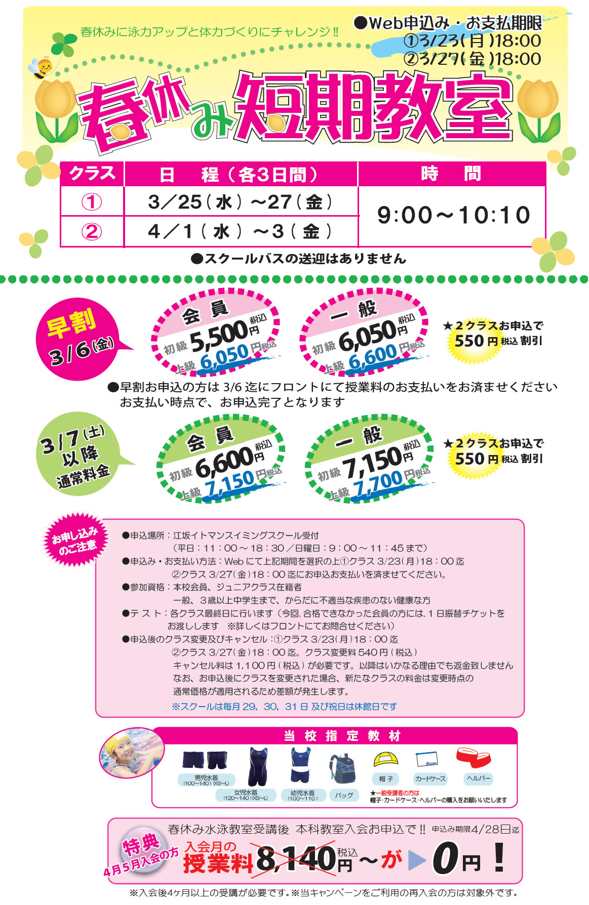 ログイン後、『短期教室』ボタンよりお申込み下さい。