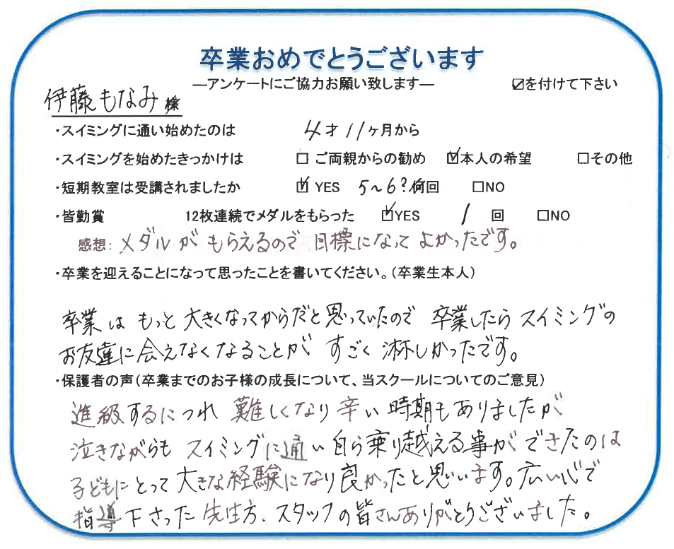 HOME > 在校生及び卒業生の声 > 2019年10月卒業生(もなみちゃん)