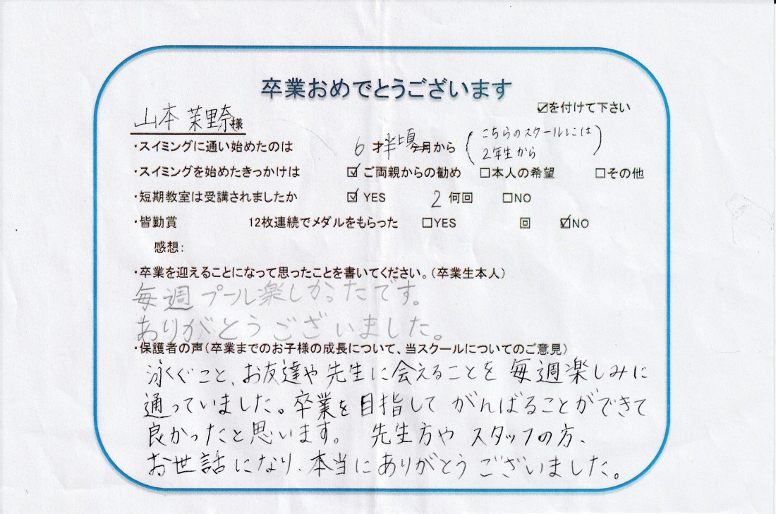 HOME > 在校生及び卒業生の声 > 2021年11月卒業生(茉里奈ちゃん)