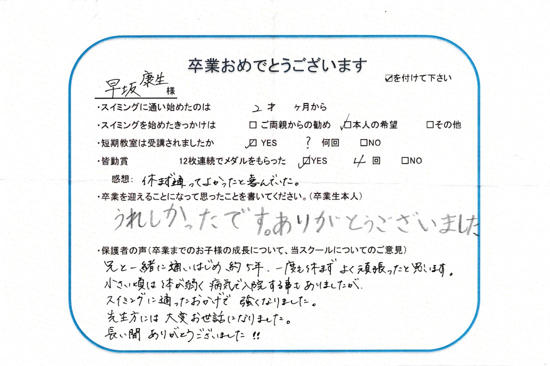 HOME > 在校生及び卒業生の声 > 2022年1月卒業生(康生くん)