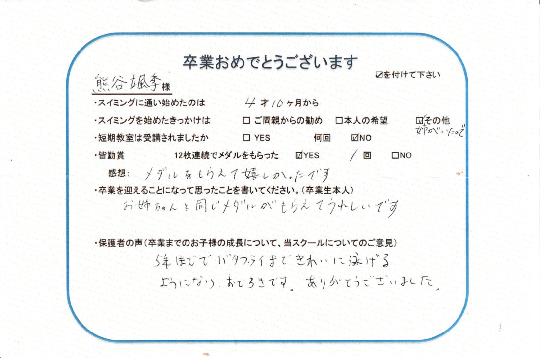クラス:ジュニアクラス2022年2月卒業