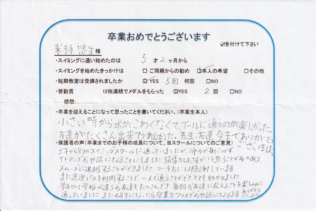 HOME > 在校生及び卒業生の声 > 2022年2月卒業生(悠生くん)