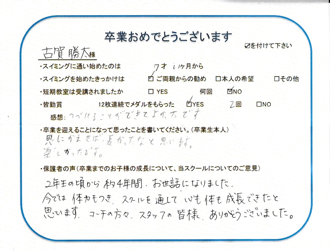 HOME > 在校生及び卒業生の声 > 2022年6月卒業生(勝太くん)