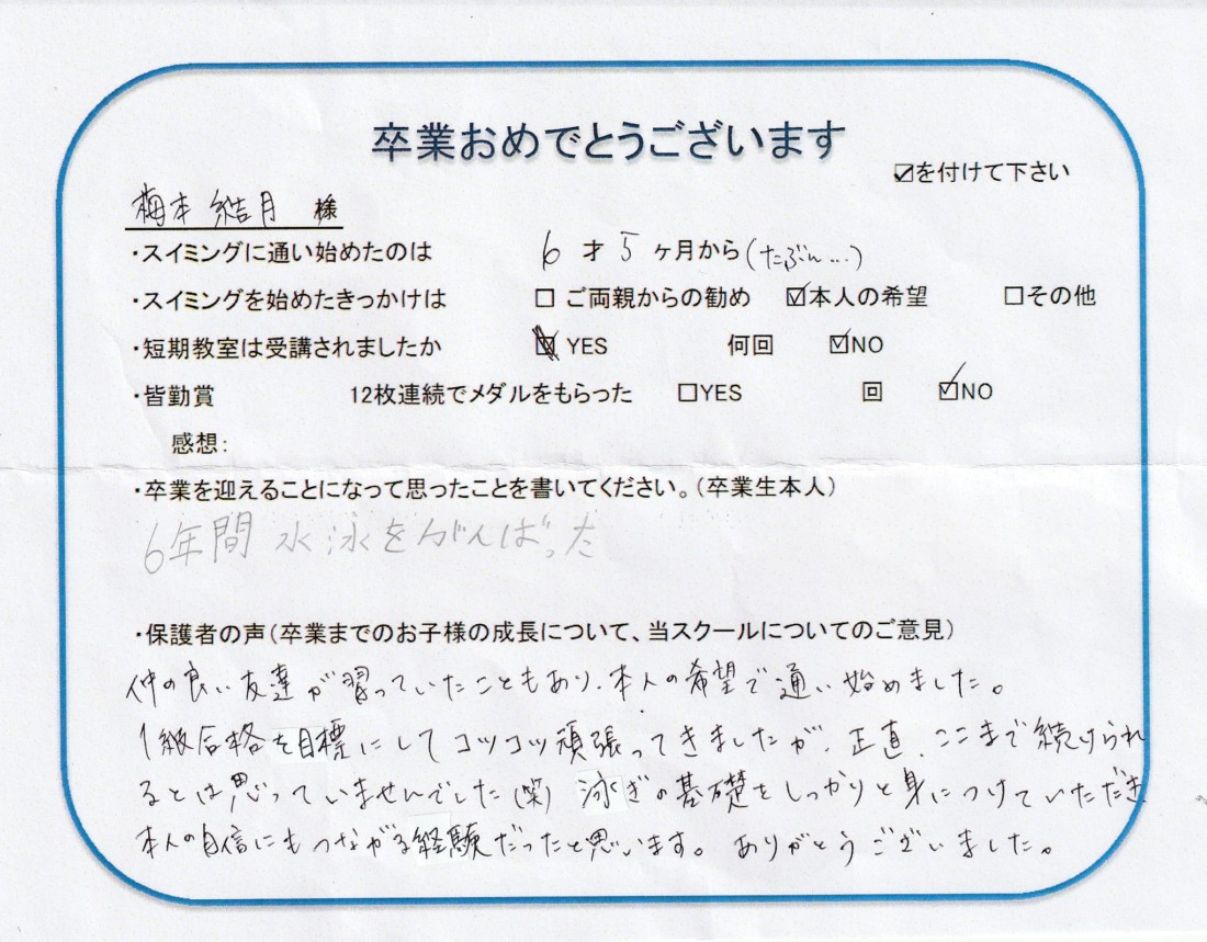 クラス:ジュニアクラス2022年7月卒業