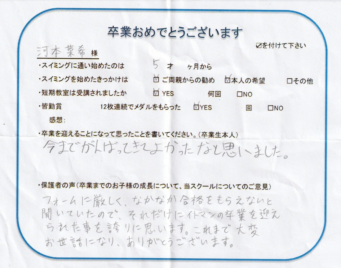 HOME > 在校生及び卒業生の声 > 2022年10月卒業生(菜希ちゃん)