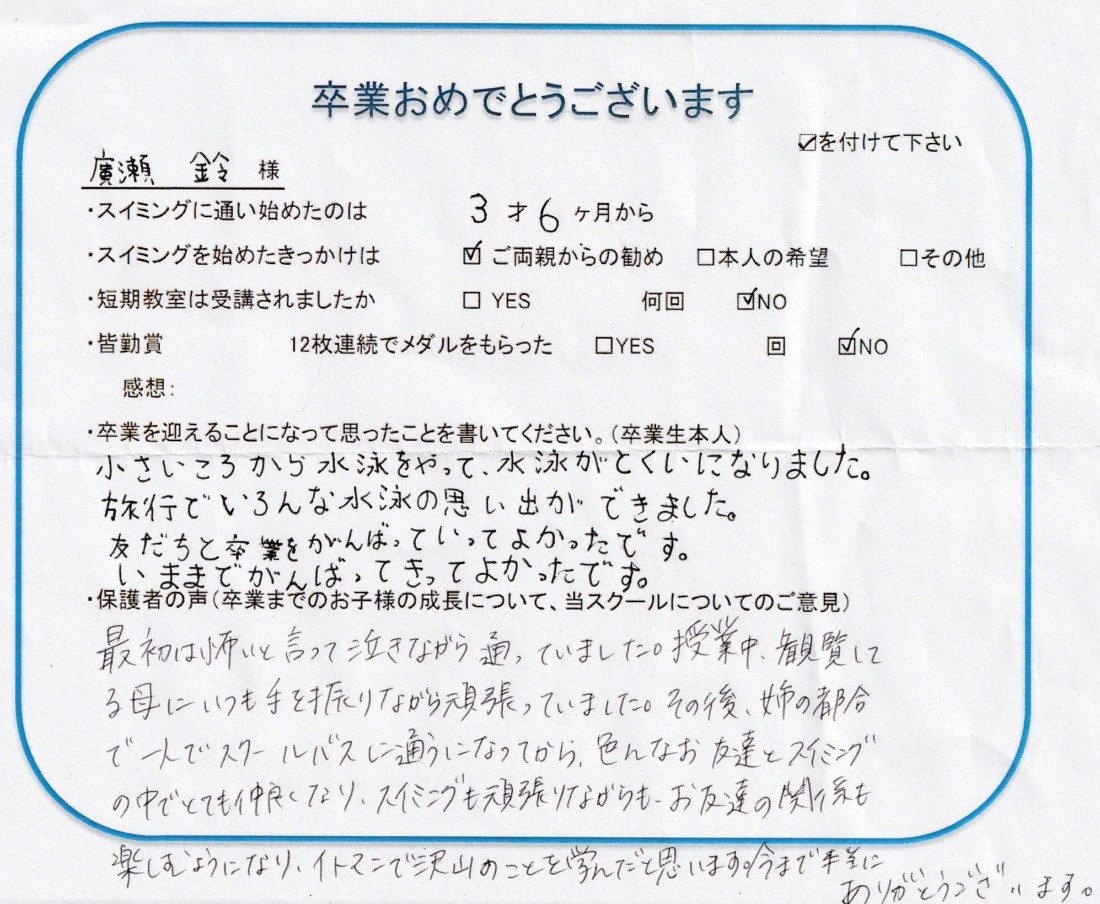 クラス:ジュニアクラス2022年10月卒業