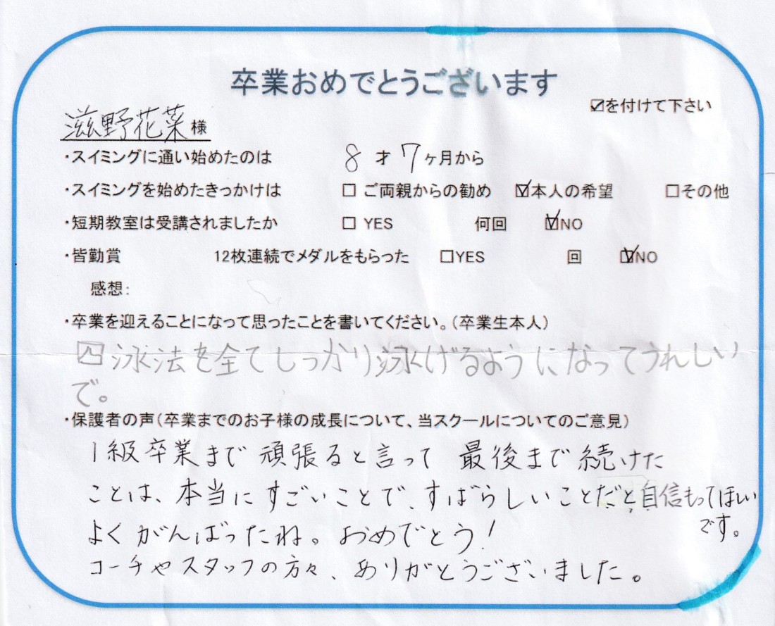クラス:ジュニアクラス2022年11月卒業