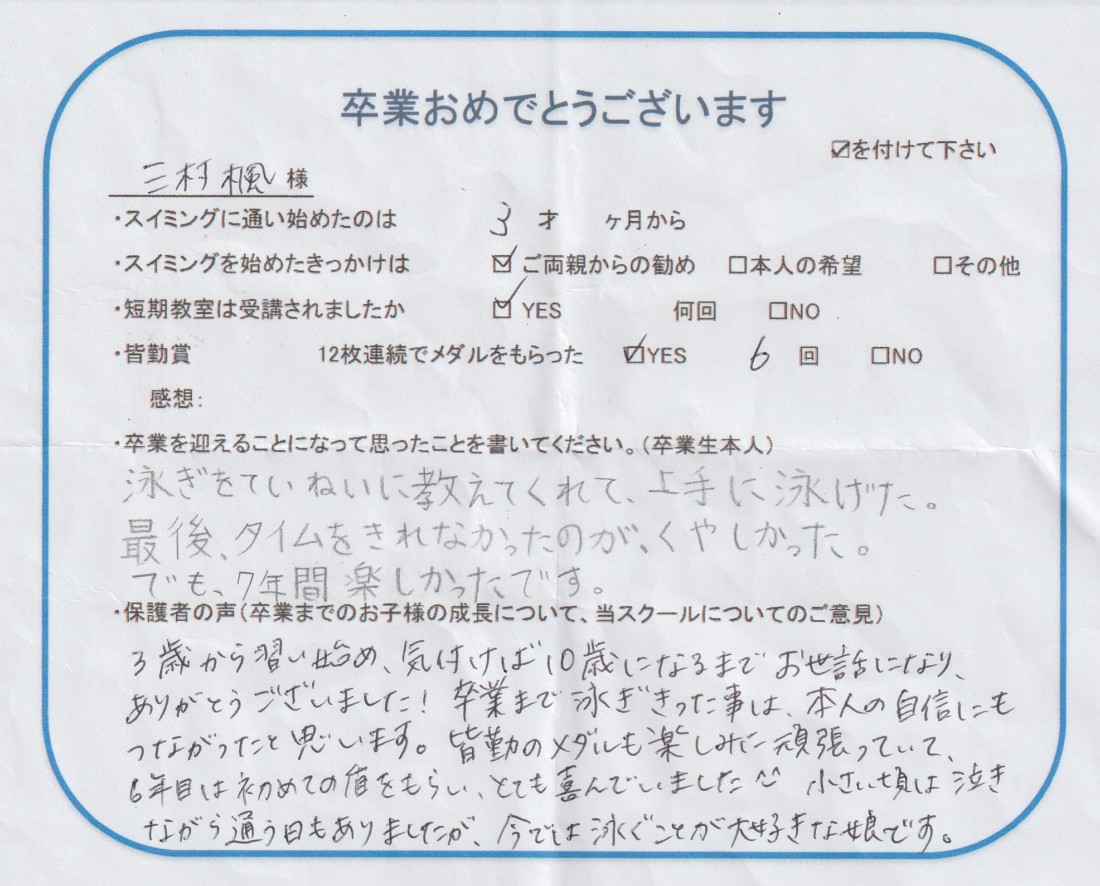 HOME > 在校生及び卒業生の声 > 2022年11月卒業生(楓ちゃん)