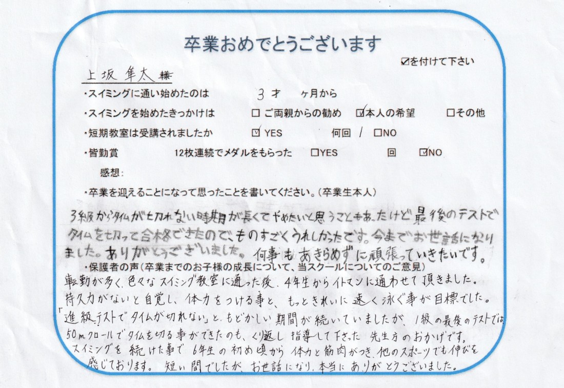 クラス:ジュニアクラス2023年4月卒業