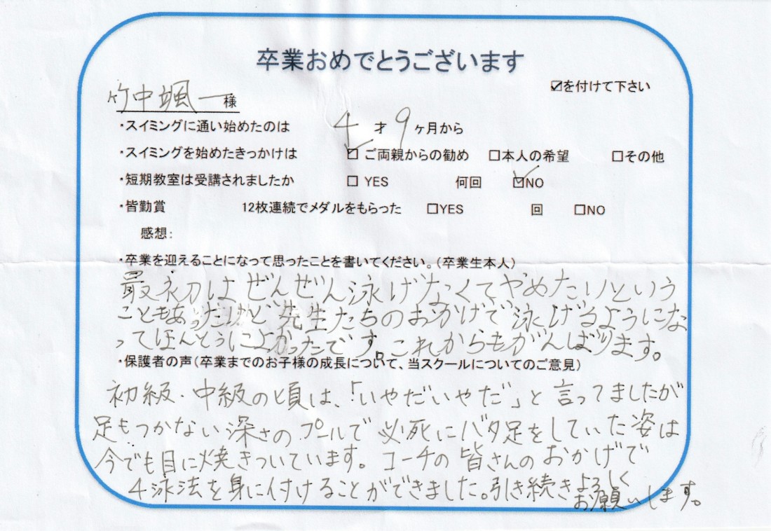 クラス:ジュニアクラス2023年6月卒業
