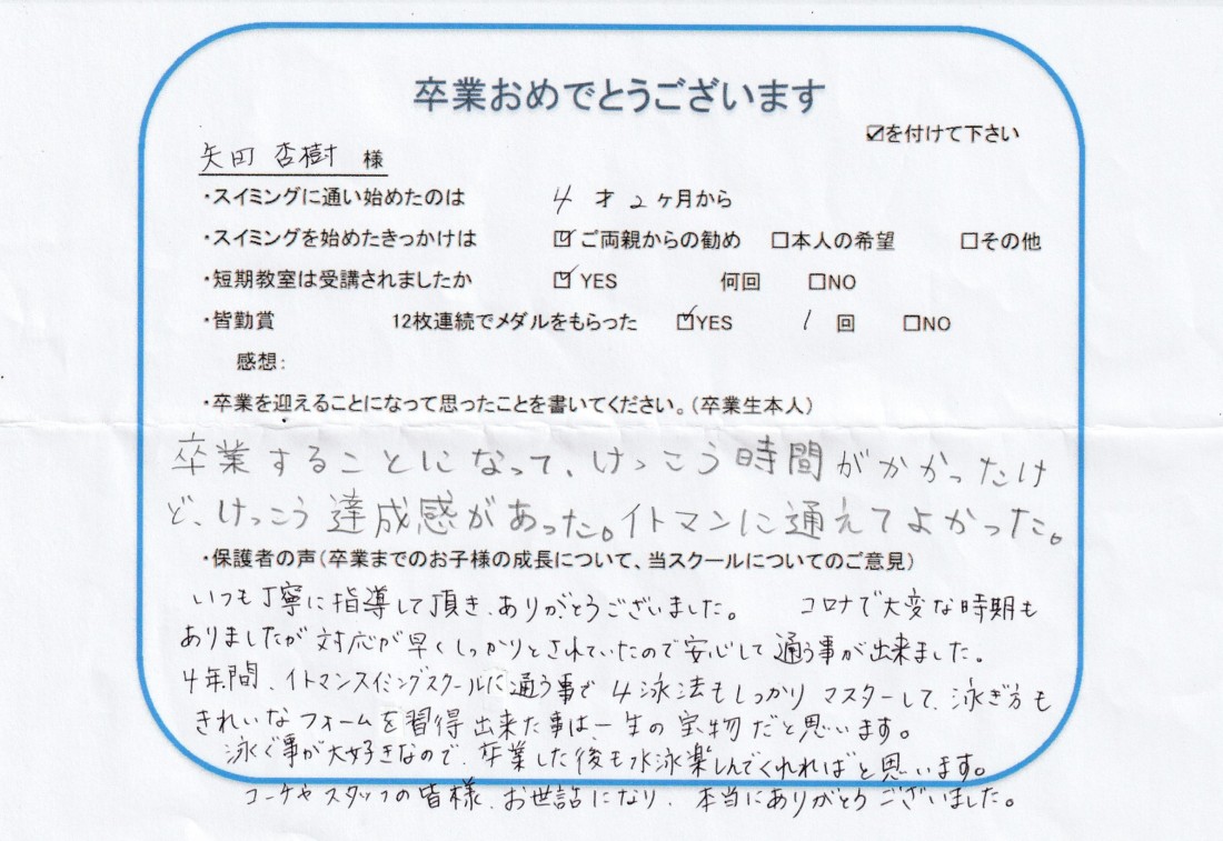 クラス:ジュニアクラス2023年6月卒業