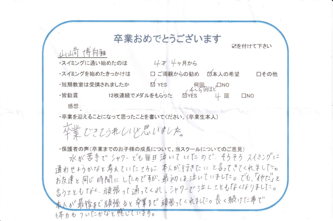 HOME > 在校生及び卒業生の声 > 2024年5月卒業生(博翔くん)