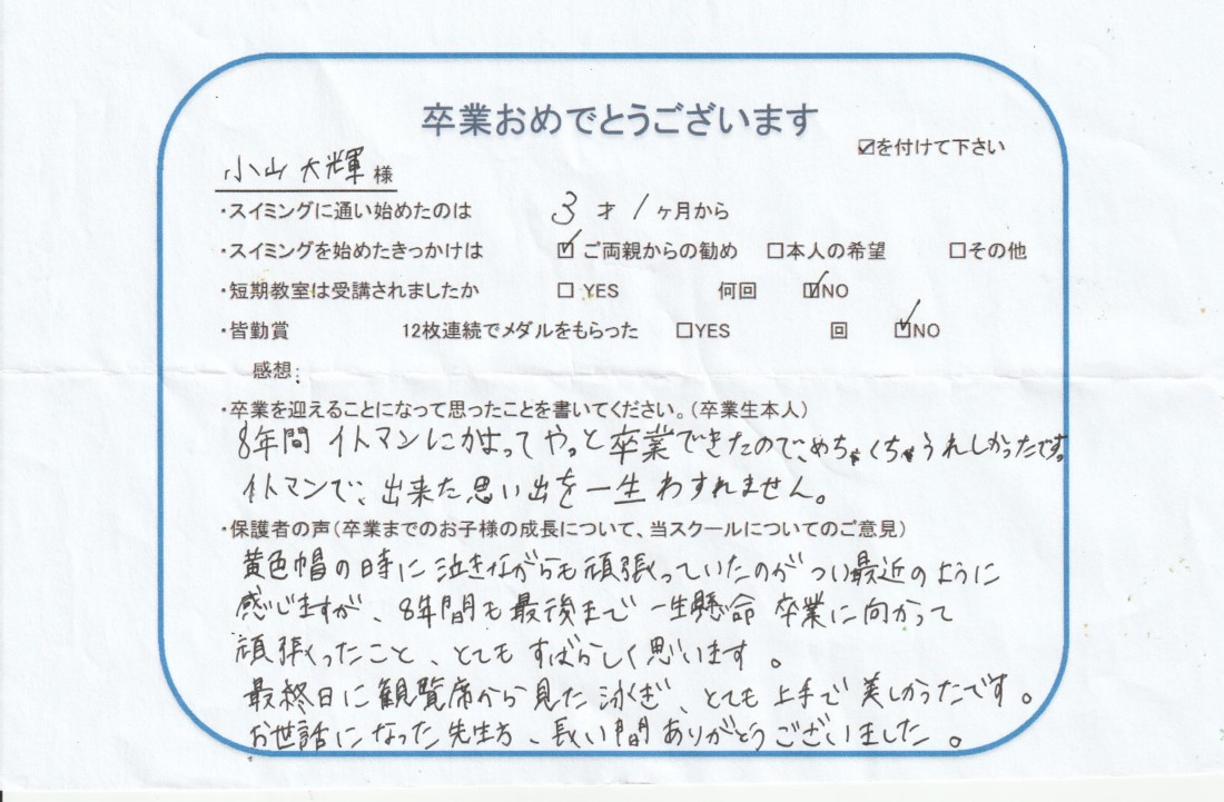 HOME > 在校生及び卒業生の声 > 2024年10月卒業生(大輝くん)