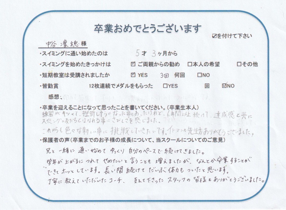 HOME > 在校生及び卒業生の声 > 2024年11月卒業生(凜穂ちゃん)