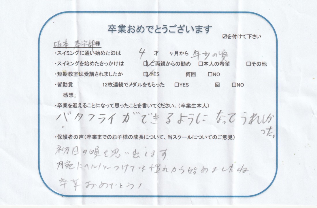 HOME > 在校生及び卒業生の声 > 2024年11月卒業生(春次郎くん)