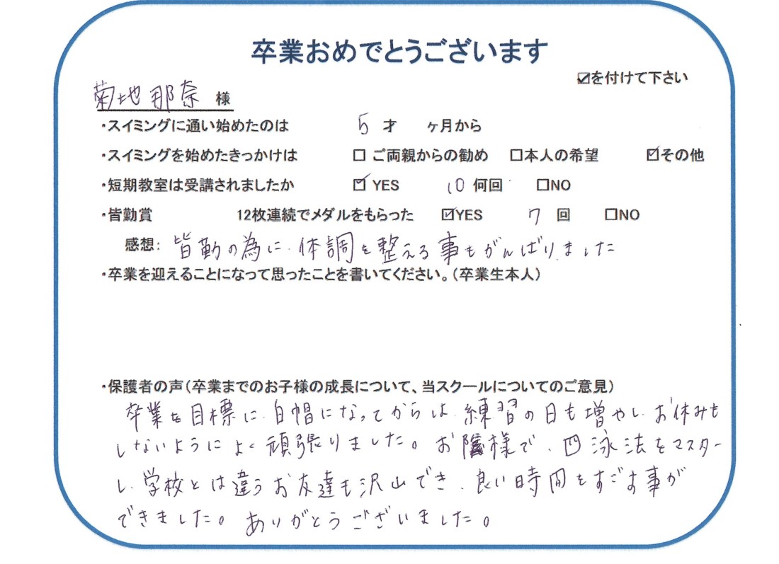HOME > 在校生及び卒業生の声 > 2025年7月卒業生(那奈ちゃん)