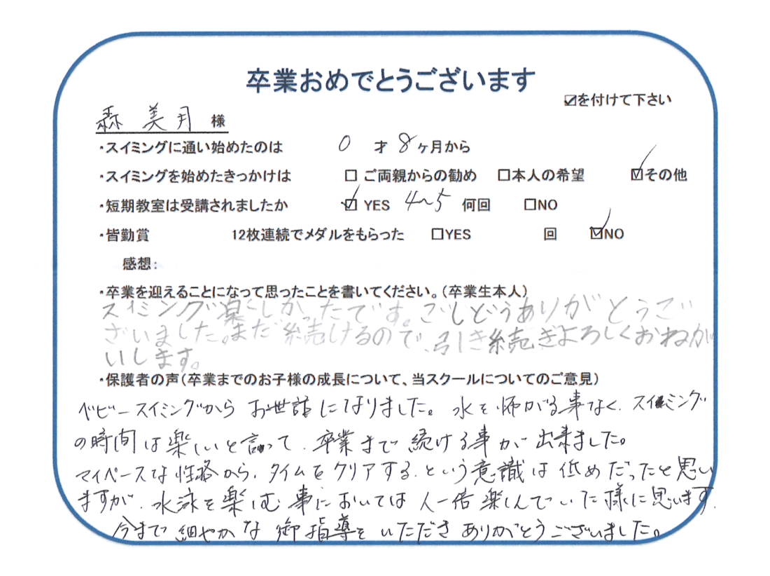 HOME > 在校生及び卒業生の声 > 2025年9月卒業生(美月ちゃん)