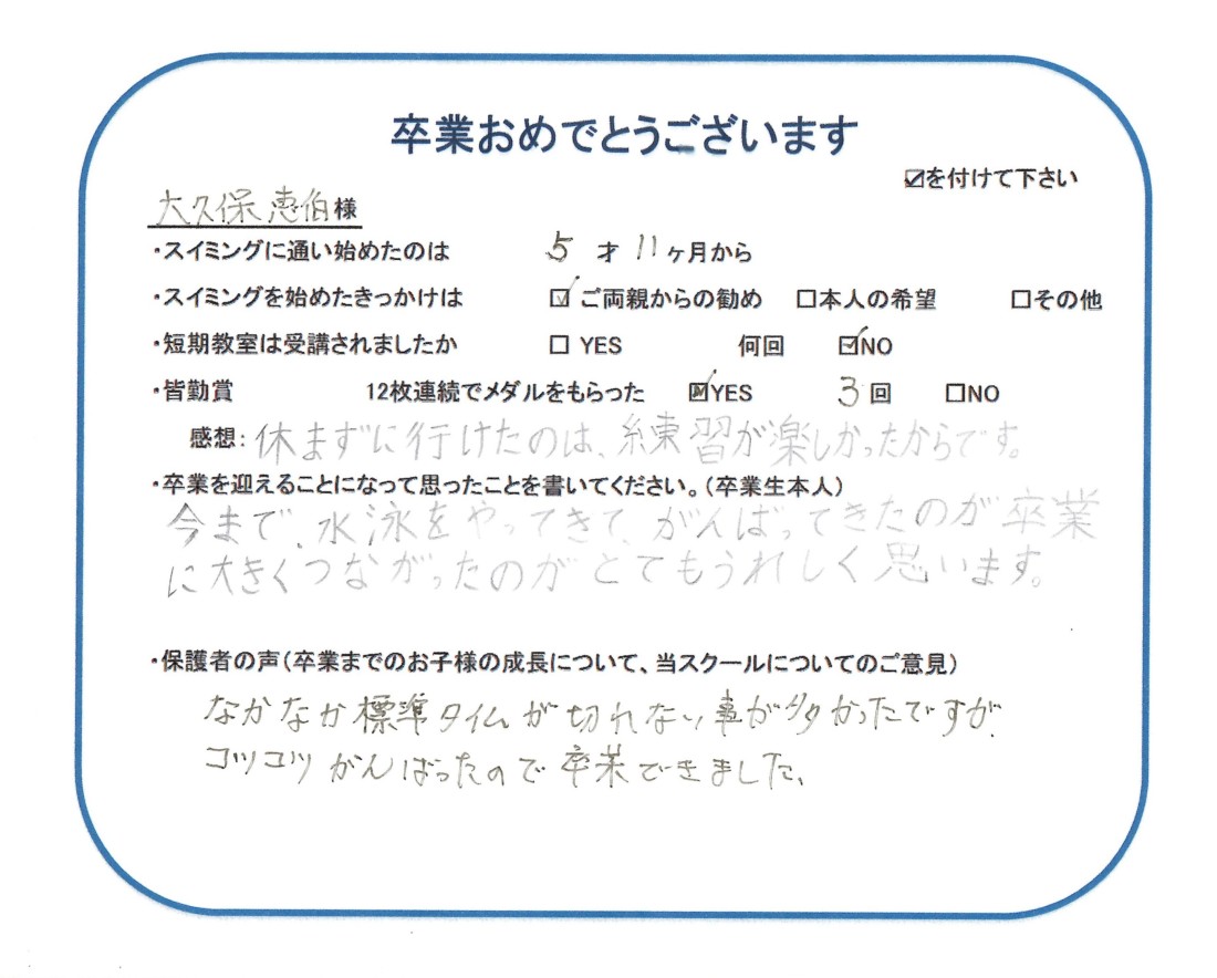 クラス:ジュニアクラス2025年9月卒業