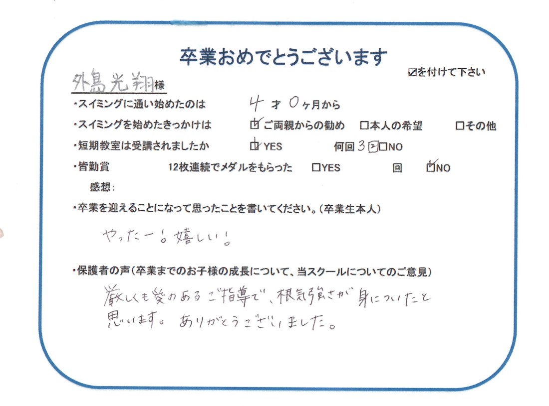 HOME > 在校生及び卒業生の声 > 2025年10月卒業生(光翔くん)