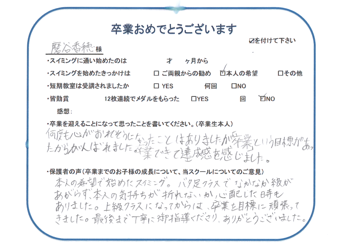 HOME > 在校生及び卒業生の声 > 2025年10月卒業生(香穂ちゃん)