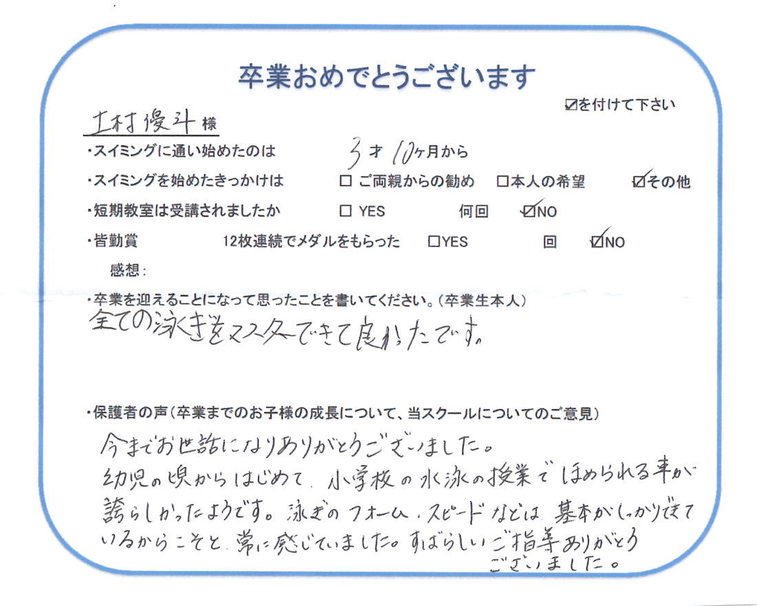 HOME > 在校生及び卒業生の声 > 2025年12月卒業生(優斗くん)