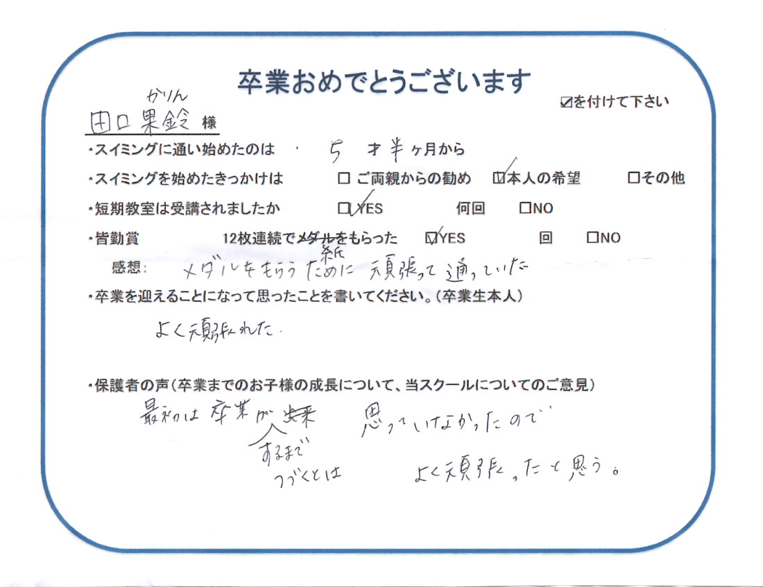 HOME > 在校生及び卒業生の声 > 2026年1月卒業生(果鈴ちゃん)