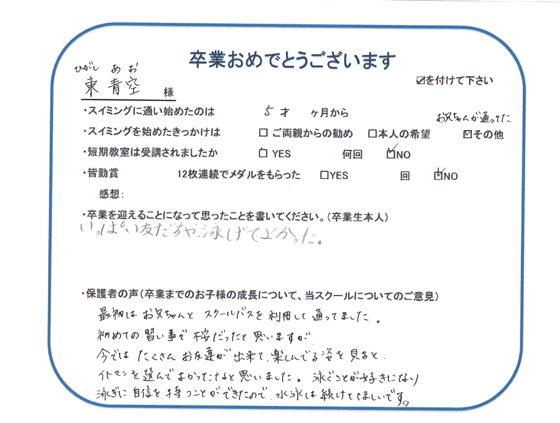 HOME > 在校生及び卒業生の声 > 2026年2月卒業生(青空くん)