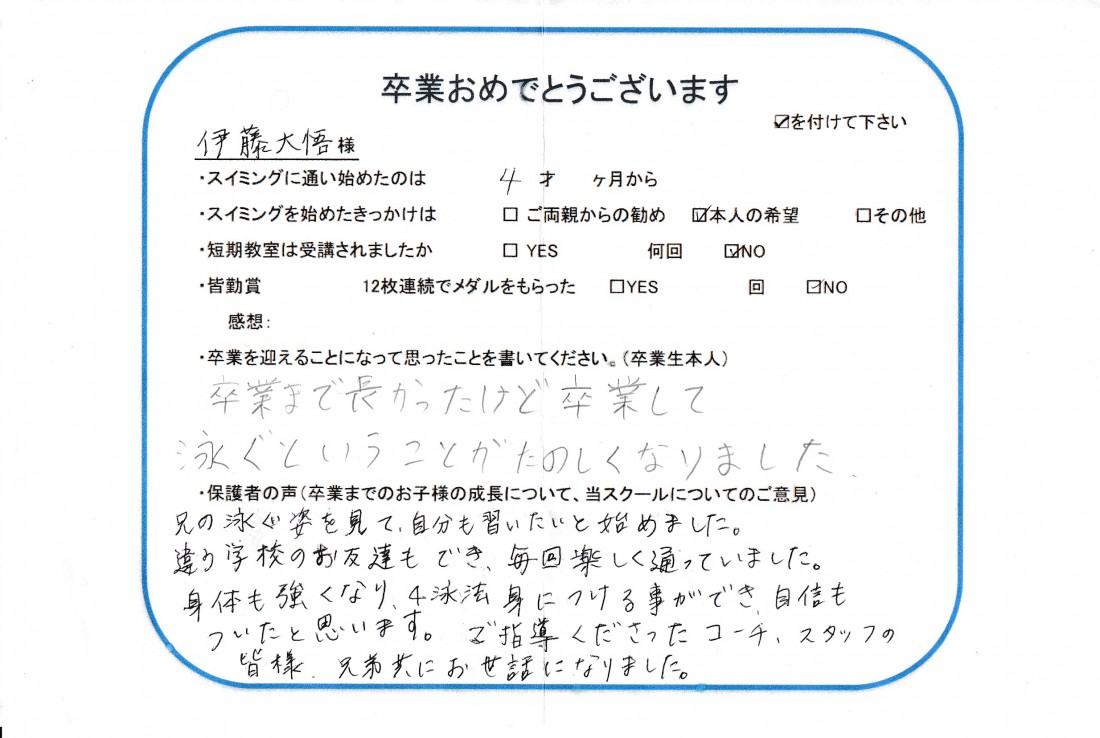 HOME > 在校生及び卒業生の声 > 2020年7月卒業(大悟くん)
