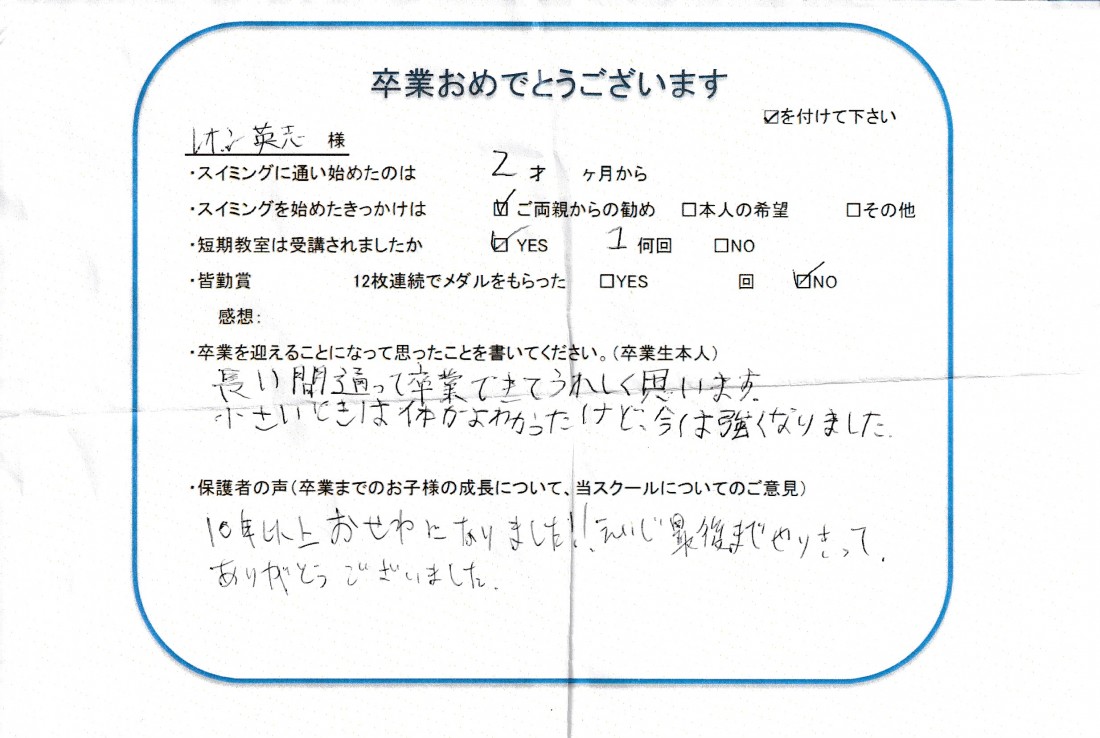 HOME > 在校生及び卒業生の声 > 2020年8月卒業生(英志くん)
