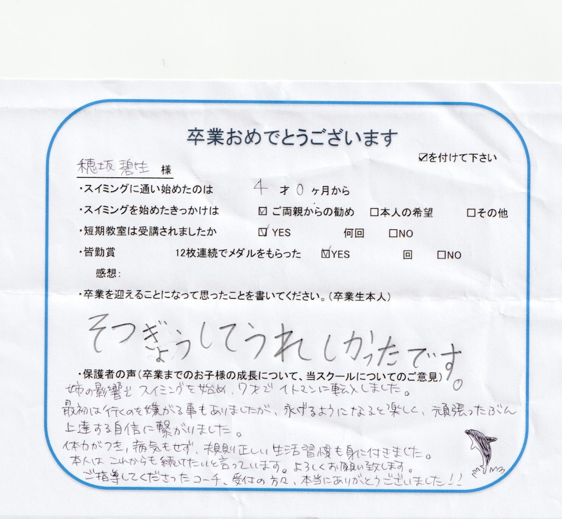 クラス:ジュニアクラス2020年10月卒業