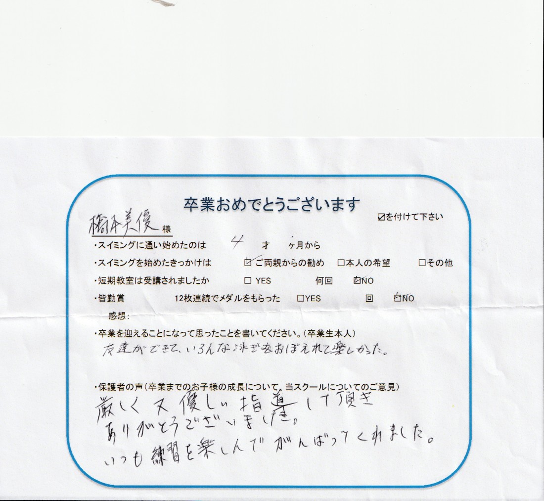 クラス:ジュニアクラス2020年11月卒業