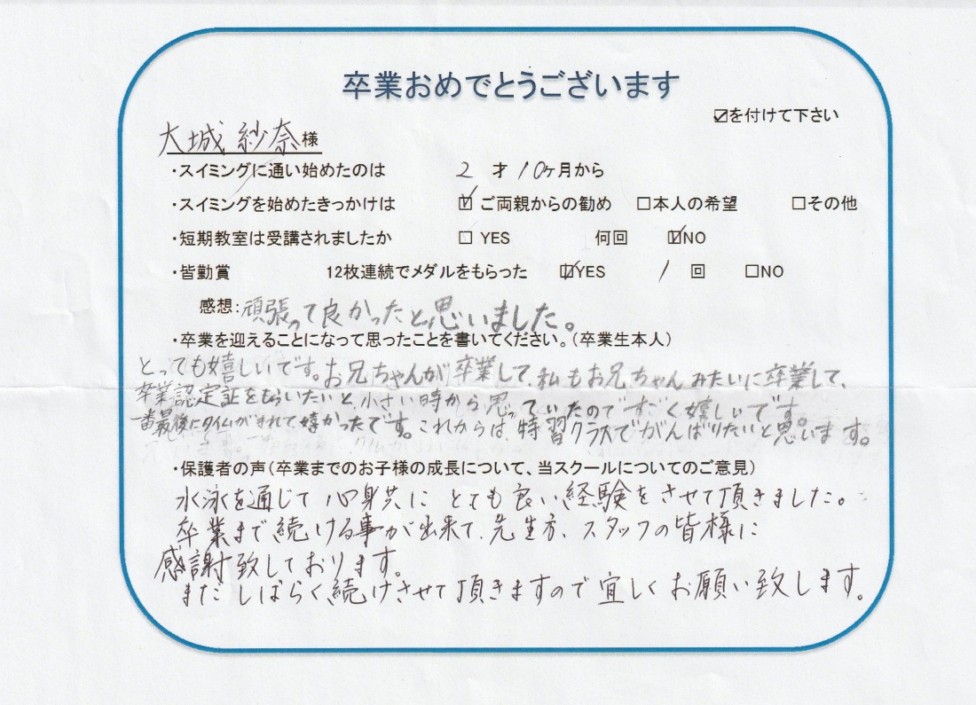 HOME > 在校生及び卒業生の声 > 2020年12月卒業生(紗奈ちゃん)
