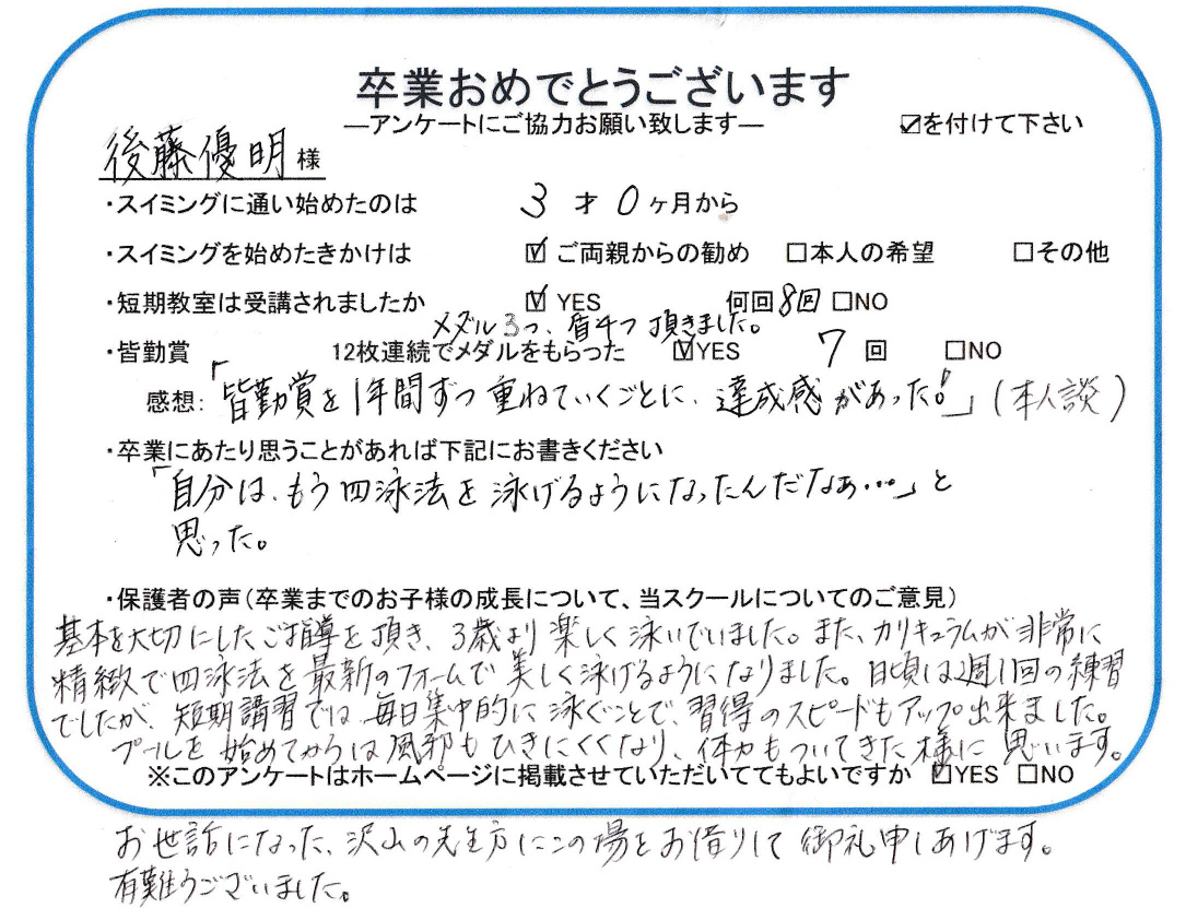 HOME > 在校生及び卒業生の声 > ジュニアクラス卒業生(優明くん)