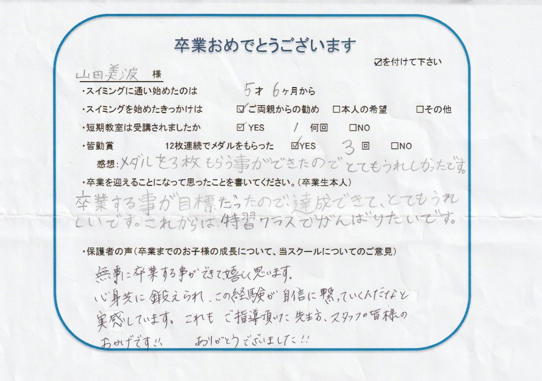 HOME > 在校生及び卒業生の声 > 2021年1月卒業生(美波ちゃん)