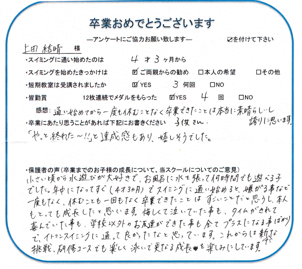 HOME > 在校生及び卒業生の声 > 2019年9月卒業生(結晴ちゃん)